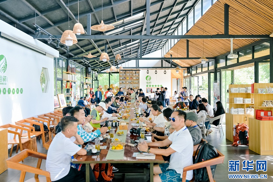 在普洱祖祥高山有機(jī)茶園品茶(10月23日攝)。新華網(wǎng)發(fā)(云南農(nóng)信社 供圖)